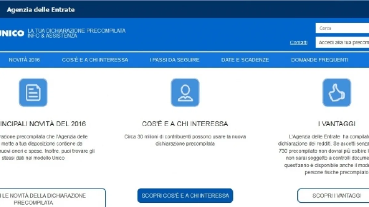 Nell’attesa che arrivi il fatidico 15 aprile, giorno in cui il modello sarà disponibile per circa 30 milioni di contribuenti, si potrà familiarizzare sulle funzioni di questa piattaforma online, che oltre a prevedere le classiche sezioni “Le principali novità del 2016”, “Cos'è e a chi interessa” e “I vantaggi”, avrà una sezione Faq costantemente aggiornata, a seguito dei quesiti pervenuti dai cittadini.