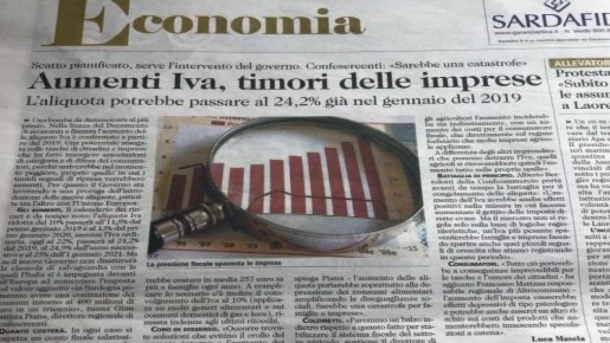 Dal 1 gennaio 2019 potrebbe aumentare l’Iva al 24,2%