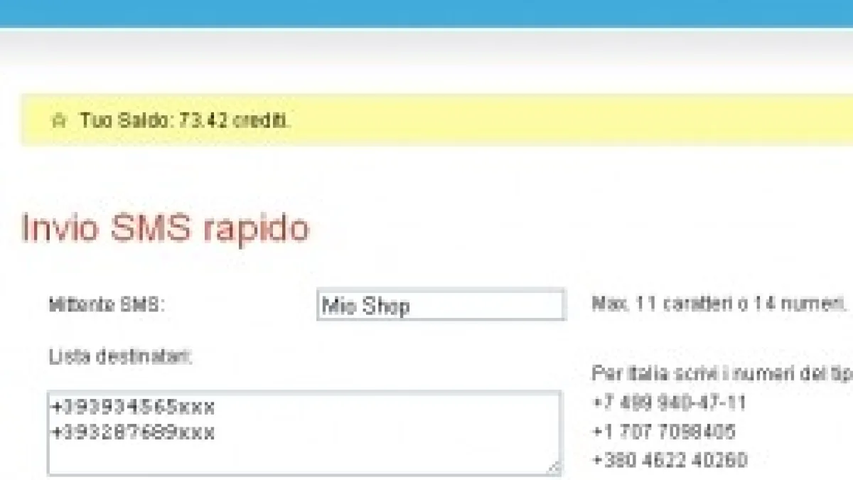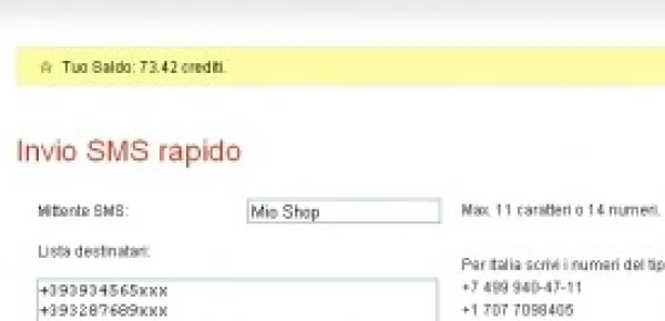 La registrazione al servizio è gratuita e consente di testarel'invio SMS senza alcun costo. Per inviare una campagna SMS basterà seguire unaprocedura guidata passo dopo passo che facilita notevolmente il lavoro ed evitaerrori di compilazione.
