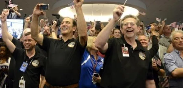 La sonda New Horizons della NASA ha dato il primo sguardo da vicino a Plutone, martedì, ed inviato i suoi messaggi di trionfo agli scienziati in attesa col fiato sospeso a miliardi di km di distanza. Ci sono volute 13 ore dopo il raggiungimento dell'obbiettivo per avvisare la Terra. "Questo è un grandissimo momento per la storia umana," ha detto John Grunsfeld, capo missione scientifica della NASA in una conferenza stampa.