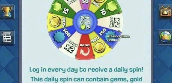 L'ultima novità della Supercell potrebbe essere il Daily Spin, un'idea molto acclamata fai parte dei giocatori. Come dice la stessa parola "rotazione giornaliera" si tratterebbe di una ruota che con la possibilità di girarla una volta ogni 24h, in palio ovviamente tantissimi premi, come gemme, oro.