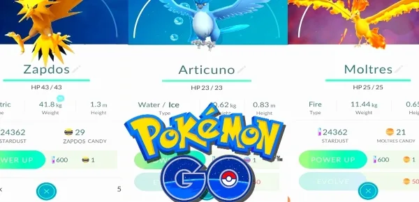 Sono stati trovati all’interno del gioco dei codici sorgente riguardanti i tre uccelli leggendari della prima generazione, ovvero Moltres, Zapdos ed Articuno. I dati, considerando il livello quaranta, attualmente il più alto raggiungibile, e con il 100% di IV, mostrano un Articuno da 2978 PL e dalla difesa, statistica più alta, pari a 272; uno Zapdos da 3114 PL e dall’attacco di 232 ed un Moltres da 3240 PL e dall’attacco pari a 242.