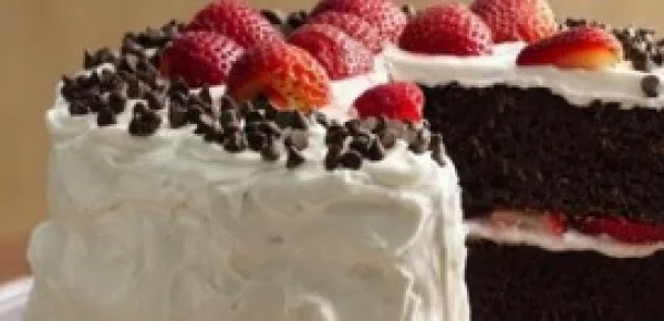 Vediamo la ricetta della torta al cioccolato e fragole. Se avete fretta, potete usare un preparato per dolce al cioccolato. Lo stampo può essere della forma che preferite.