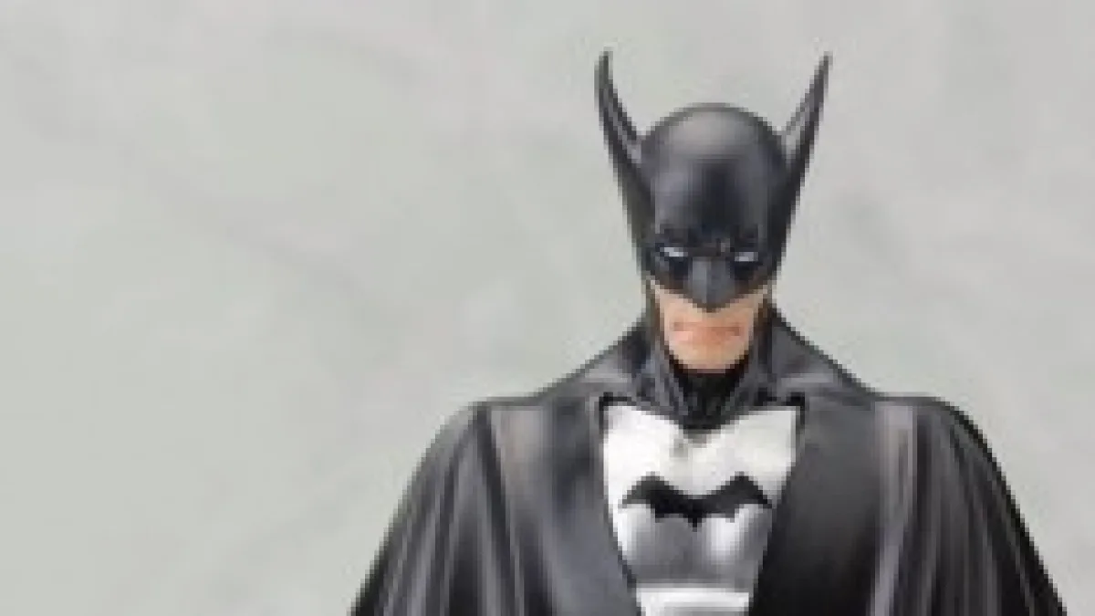 Completamente nero col pettorale argentato, orecchie nere e lunghe (ovviamente del cappuccio), stivali neri, mantello nero con interno blue, ecco com'era il primo Batman ed ecco come lo propone la Kotobukiya ovviamente accompagnato da una basetta (di cui per ora non vi è immagine ma che sembrerebbe essere magnetica).
