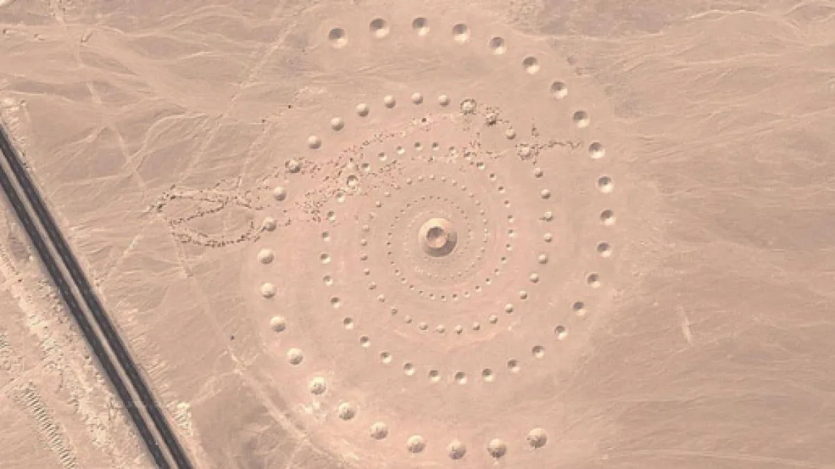 Grazie a Google Maps si sarebbe riuscita ad avvistare una strana figura creata al di sopra del suolo deserto. La figura sembrerebbe essere formata da cumuli di sabbia sollevati e dà vita ad alcune curiosissime forme circolari. Per via della straordinaria perfezione che presenta, molti difficilmente ritengono che essa possa essere opera di un umano o di una collettività.