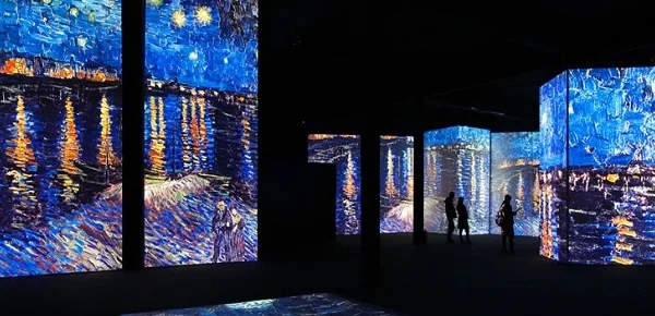 La mostra è strutturata come un vero e proprio happening nel quale i visitatori diventano parte integrante delle opere proiettate su grandi pannelli, pareti e soffitti per mezzo di quaranta proiettori ad alta definizione. 3000 immagini che costituiscono un percorso cromatico attraverso la vicenda artistica ed i luoghi nei quali ha vissuto il genio di Arles.