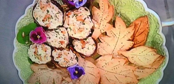 Ricetta: rimuovete i gambi ai funghi ed infornate a 150° le coppe con olio, sale e pepe per 5 minuti. Preparate il ripieno delle coppe con ricotta, pecorino, aglio e prezzemolo e sistematelo nelle coppe, coprendo poi i funghi con pinoli, un filo di olio ed infine infornate per altri 5 minuti a 150°. Intanto preparate la pasta brisè impastando la farina con burro, sale, pepe, erbe aromatiche e vino. Dopo stendete l'impasto, ricavate elementi a forma di foglie e infornatele a 180° per 15 minuti. Impiattate i funghi con le foglie di brisè alle erbe.