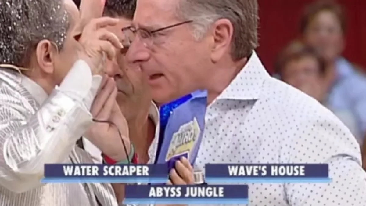 La domanda posta da Bonolis era: ‘Gli esseri umani non si accontentano mai. Dopo aver costruito grattacieli che arrivano fino al cielo, adesso vogliono costruire un enorme palazzo subacqueo. Come si chiama questo progetto?’. A questo punto il bizzarro personaggio ha iniziato a leggere a modo suo le possibili risposte. ‘Water Scraper’ è diventato ‘vuvuvu a ti er esse ci erre a p erre’ tra le risate del pubblico e la disperazione di Paolo. L’intervento di Luca Laurenti ha permesso al concorrente di capire la prima opzione. L’Alieno si è poi sbizzarrito nelle altre due risposte quando un apostrofo è diventato ‘tegola sospesa’ e la ‘j’ è diventato il classico ‘manico d’ombrello’.