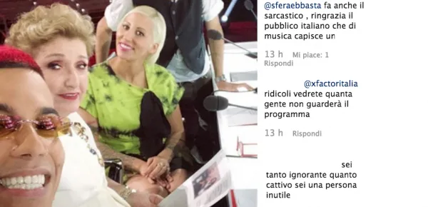 Ma c'è anche chi ha deciso di andarci giù più pesante: "Fa anche il sarcastico, ringrazia il pubblico italiano che di musica non capisce un ca...", e chi coinvolge la produzione di X Factor, o meglio, chi gestisce i social: "Che commento ridicolo, e X Factor risponde pure. Quanti anni avete voi che gestite i profili? Dodici a testa?"