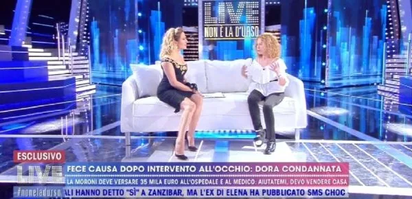 Dora Moroni ha spiegato di essere stata condannata in appello a pagare risarcimento e spese processuali ai medici che aveva accusato di aver sbagliato l’intervento per ridurre lo strabismo. “L’occhio era spostato verso l’esterno e un dottore mi aveva assicurato che si trattava di un’operazione molto semplice”. La cantante ha spiegato che la condizione dell’occhio è peggiorata dopo l’intervento.